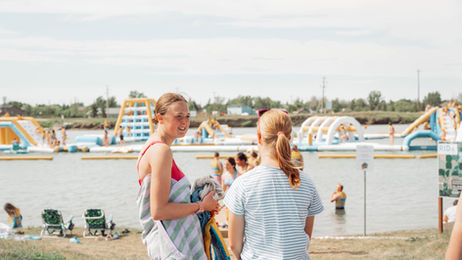 The first of its kind in southern Alberta, the floating waterpark features platforms, slides, a trampoline, monkey bars, and a blob launch pad plus balancing and climbing elements, and more. Jump, slide, and bounce through the ultimate outdoor waterpark!
